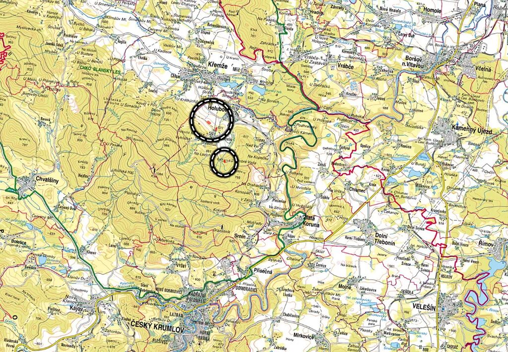V katastrálních územích Holubov a Třísov, okres Český Krumlov, nabízíme k prodeji soubor pozemků ve výlučném vlastnictví, zapsaných na listech vlastnictví č. 1174 a 282. Celková výměra těchto pozemků činí 3 785 m².