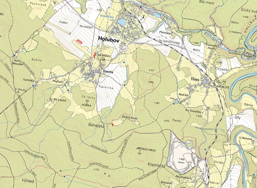 k. ú. Holubov: parcely č. 849/1 (ostatní plocha), 900/27 (orná půda),