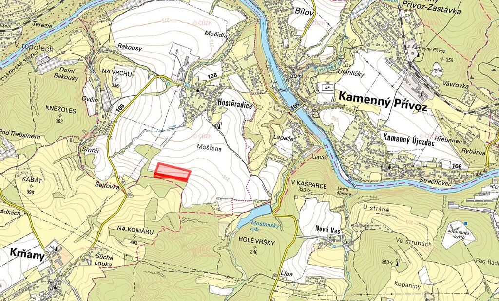 Nabízím k prodeji soubor pozemků ve výlučném vlastnictví, situovaný v atraktivní oblasti jižně od Prahy – v katastrálním území Hostěradice, obec Kamenný Přívoz, okres Praha-západ. Pozemky jsou zapsány na LV 1879 a tvoří je parcely č. 420/1, 420/3 a 439/6.