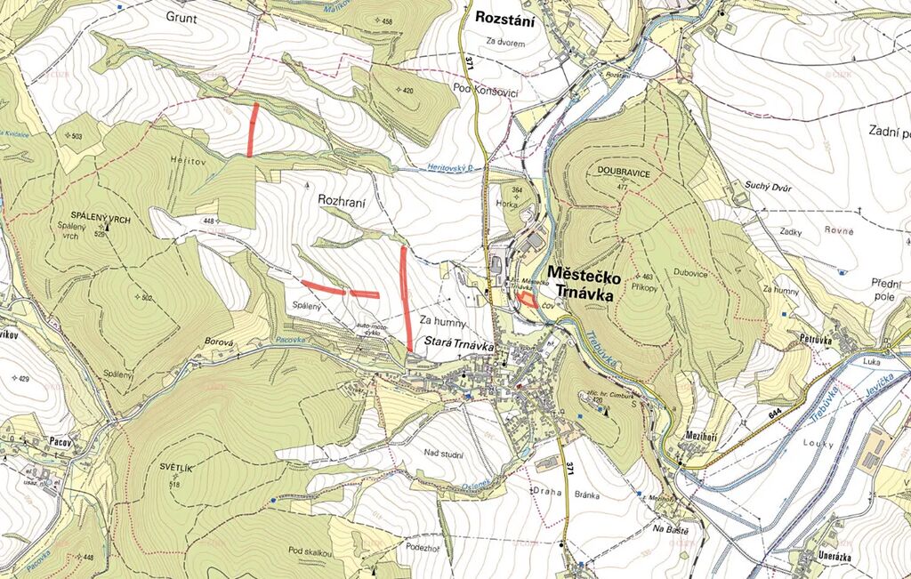 V KÚ Městečko Trnávka, na LV 669, se nachází parcela č. 240/42 o výměře 6 181 m², vedená jako trvalý travní porost.