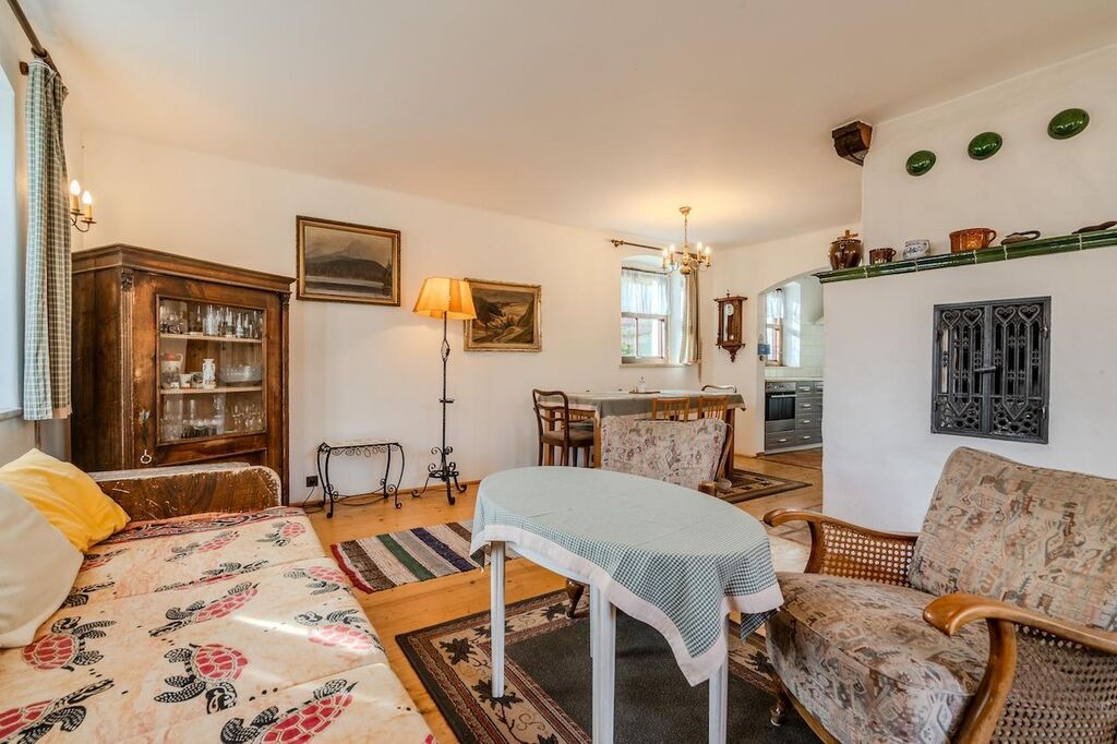 V přízemí je obytná část, kdy z chodby s úložnými prostory a schodištěm projdete do obývacího pokoje s jídelnou a kuchyňským koutem, který byl nově vestavěn cca před 10ti lety. Dominantou obytné části jsou ručně dělaná kamna se sušičkou. V koupelně (cca 10m2) s vanou, umyvadlem a wc zbylo dost místa a tak je zde připravena sauna. Vytápění je zde stejně jako v kuchyni a chodbě řešeno elektrickým podlahovým topením.