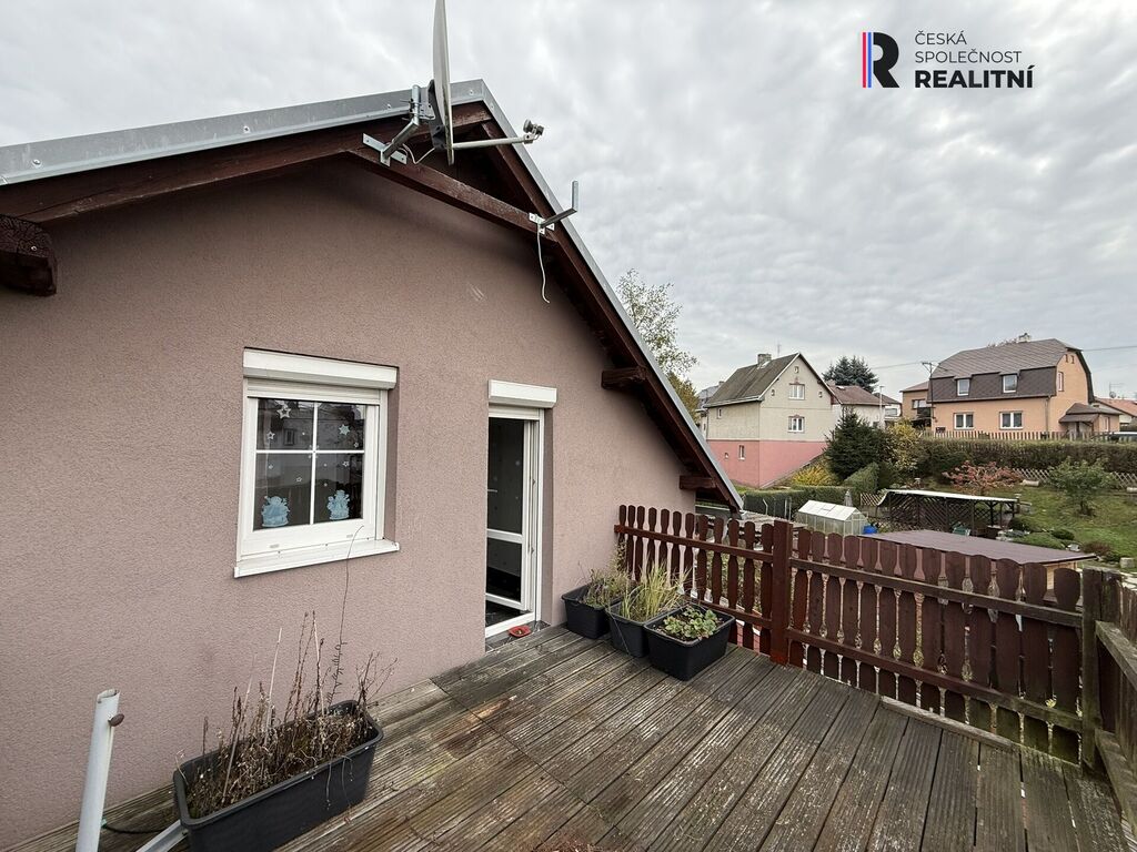 K domu patří uzavřený dvorek se zámkovou dlažbou a krytým stáním pro auto, venkovní posezení a dřevník. I když dům nemá klasickou zahradu, je to naopak výhoda pro ty, kteří chtějí mít vlastní dům, ale nechtějí trávit volný čas sekáním trávy a údržbou pozemku – dvorek nabídne dostatek soukromí i prostor k odpočinku.