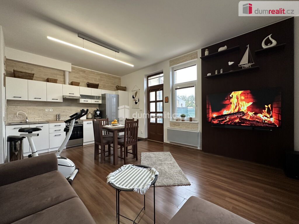 - obývací pokoj vybaven rohovou rozkládací sedačkou úložným prostorem, jídelním stolem + 4 židle, TV s domácím kinem , kuchyňským koutem s indukční varnou deskou, vestavnou elektrickou troubou, kombinovanou lednicí, mikrovlnnou troubou, varnou konvicí, kávovarem, odsavač s vývodem ven, rotoped, jeden klasický vysavač a jeden tyčový bateriový vysavač.