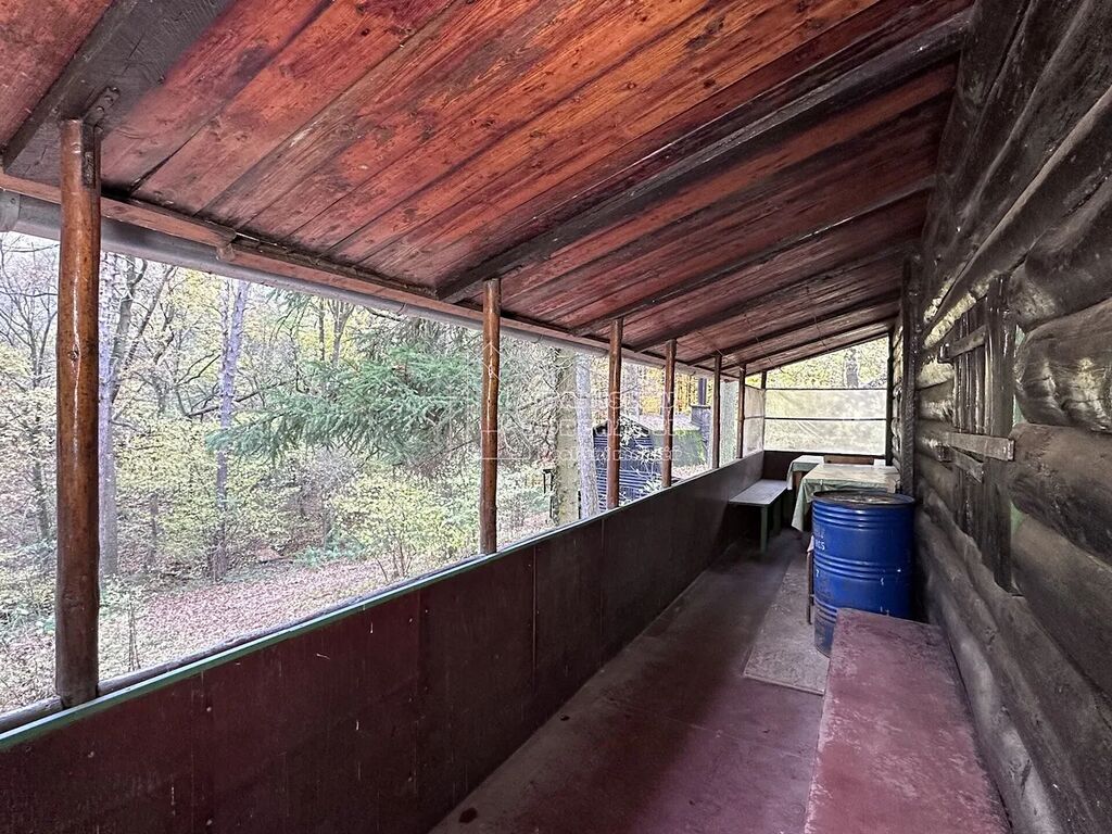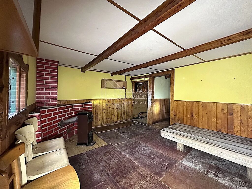 V chatě jsou dvě skromné místnosti s kamny na tuhá paliva, zastřešená veranda ideální pro ranní kávu i večerní posezení, a menší komora na nářadí či palivo.