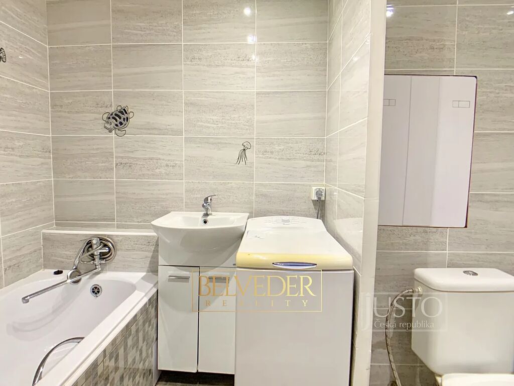 Byt prošel nedávnou rekonstrukcí – koupelna má nový keramický obklad a sanitu, v celém bytě jsou plovoucí podlahy.
