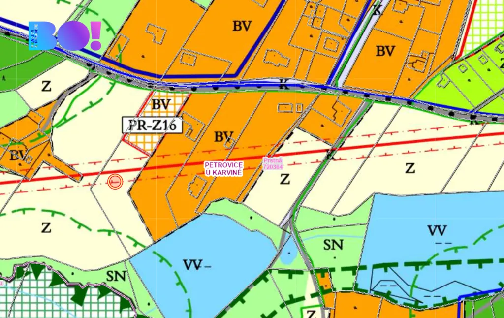 Hlavní využití pozemku: rodinné domy (samostatně stojící rodinné domy a dvojdomy), venkovské usedlosti. Tento pozemek je určen k výstavbě rodinného domu v zastavitelné ploše s označením PR-Z16, nabízí dostatek prostoru pro vytvoření nejen obytné části, ale i zahrady, odpočinkové zóny nebo bazénu.