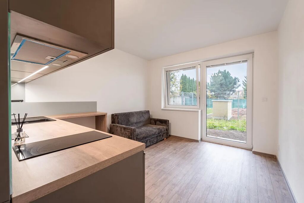 K pronájmu nabízíme moderní a velmi útulně řešený byt 1+KK o velikosti 32 m², který se nachází v klidné lokalitě na ulici Frištenského (Olomouc – Neředín). Byt se nachází v přízemí čtyřpatrové novostavby (energetický štítek B) s orientací na východní stranu. K bytu náleží oplocená předzahrádka o výměře cca 9 m² a samostatná skladovací místnost s výměrou 4 m², která je situována na chodbě hned vedle vstupu do bytu.