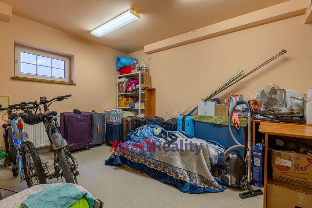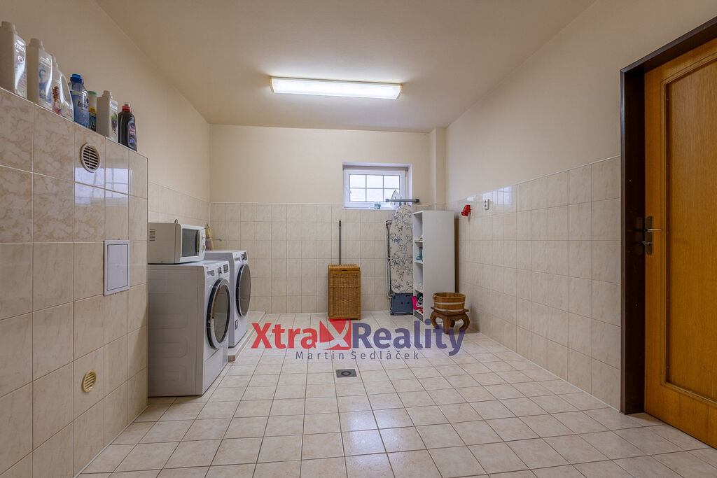 V přízemí nalezneme již zmiňovanou garáž, kancelář, která se nachází hned u vstupních dveří a návštěva tak nebude narušovat rodinný život; dále komoru, kotelnu, prádelnu a další místnost, která může sloužit na uskladnění sezónních věcí.