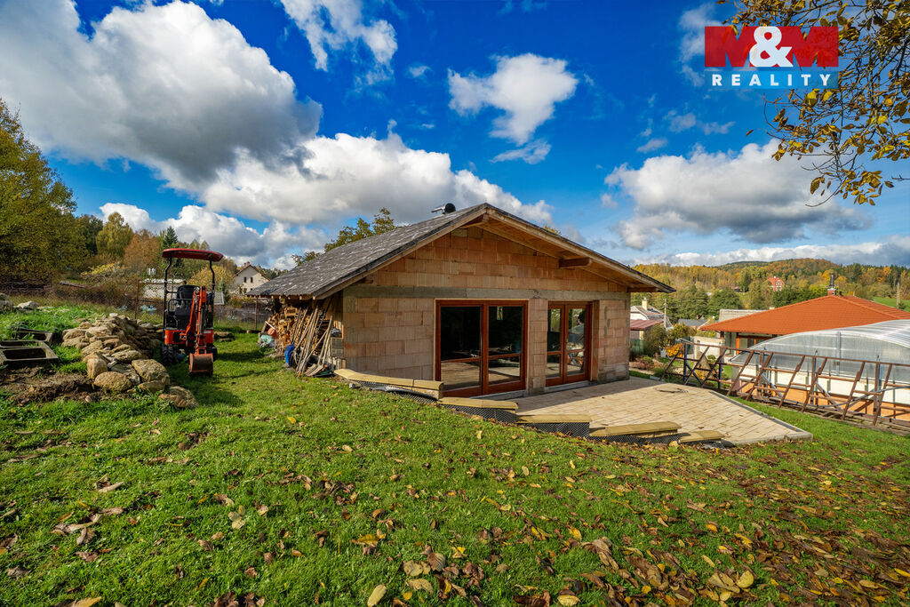 Exkluzivní novostavba rodinného domu ve Smržovce na jedinečném místě nabízí užitnou plochu 182,77 m² a pozemek 1 592 m² s jihovýchodní orientací zahrady. Dům je ve finální fázi dokončování s možností úprav podle vlastních představ a přípravou na fotovoltaiku. V suterénu se nachází chodba, pokoj pro hosty, prádelna se sušárnou, šatna, sklep, úklidová místnost s WC, koupelna a technická místnost s tepelným čerpadlem, akumulační nádrží 750 l, bojlerem 250 l, elektroinstalací, zabezpečením a kamerovým systémem, vytápěná garáž až pro tři auta. V přízemí 5+kk se zimní zahradou – obývací pokoj s kuchyní a krbem s výměníkem, ložnice, 2 pokoje, pracovna, koupelna s vanou i sprchou, samostatné WC a podlahové topení s oddělenými okruhy. Na pozemku pak krytý bazén délky 10 m s relaxační zónou, dvě terasy, zahradní domek s letní kuchyní, přípravu na saunu a sprchu, vodu ze studny kopané i vrtané, okrasnou zahradu, zámkovou dlažbu, kryté parkování. Dům je vhodný pro větší nebo dvougenerační rodinu.