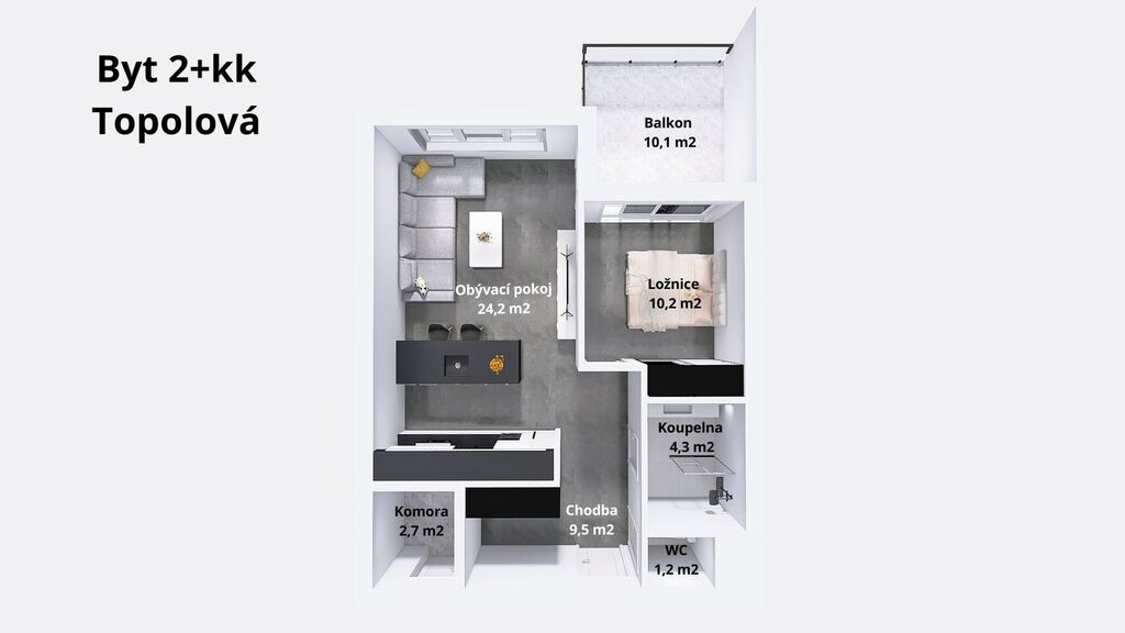 Krásný byt 2+kk v novostavbě na ulici Topolová.