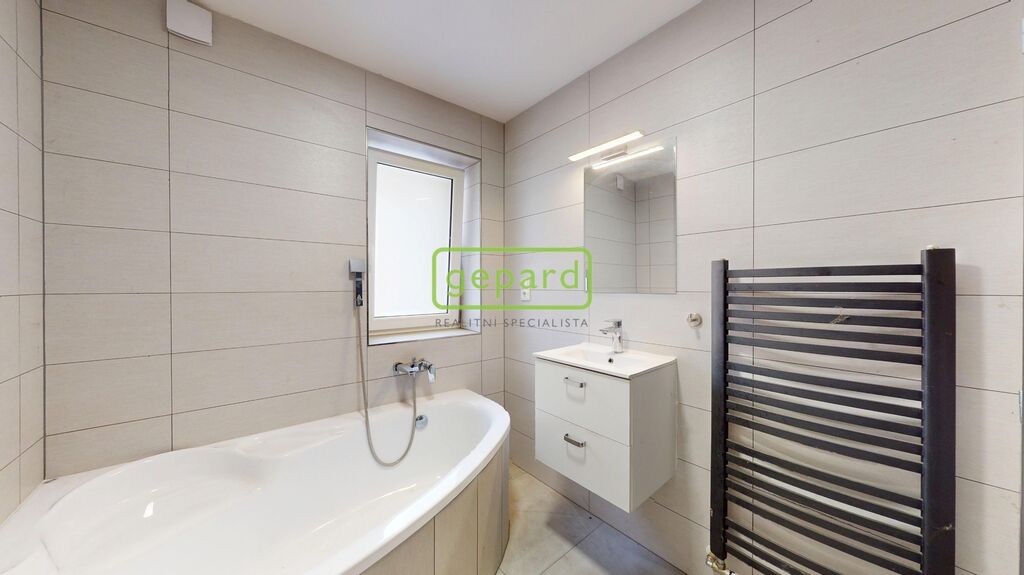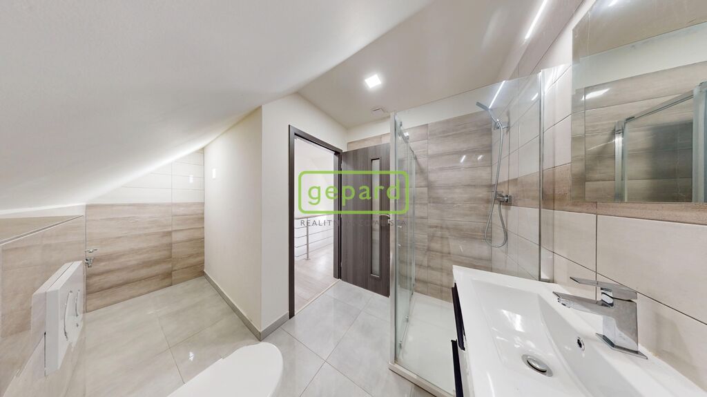 Nemovitost je napojena na veřejný vodovod, odpad je řešen jímkou. Topení zajišťuje elektrický kotel, teplá voda je ohřívána elektrickým bojlerem. Střešní krytina je z pálené tašky, podlahy jsou plovoucí. Dům je dvoupatrový – v přízemí se nachází prostorná kuchyň s kvalitní kuchyňskou linkou, indukční deskou, troubou, myčkou a digestoří, dále koupelna s vanou, WC a umyvadlem a vstupní chodba. V druhém nadzemním patře jsou dva pokoje a druhá koupelna se sprchovým koutem, WC, umyvadlem a prostorem pro pračku a myčku. Dům je zčásti podsklepený, kde jsou umístěny technické prostory s elektrickým kotlem a bojlerem.