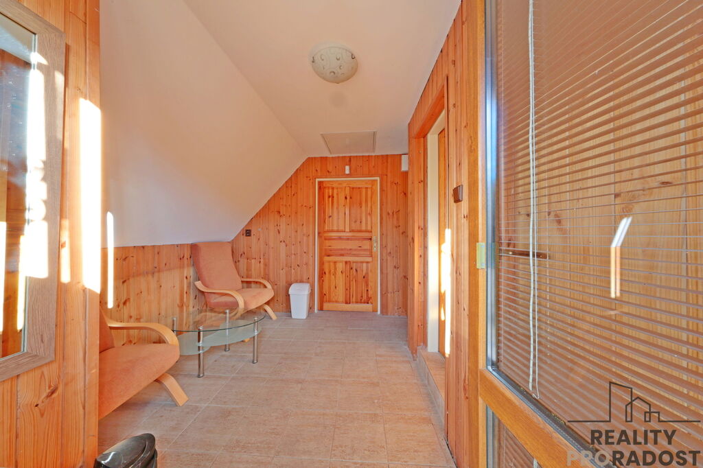 2. nadzemní podlaží – klimatizovaný pokoj s pěti lůžky, sedací soupravou, koupelna se sprchou a WC, relaxační kout.