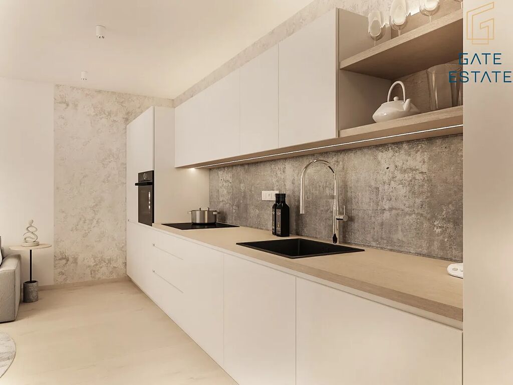 Dominantou je nová, plně vybavená kuchyň s elegantními detaily, prostorný obývací pokoj s výhledem do okolí a útulná ložnice.