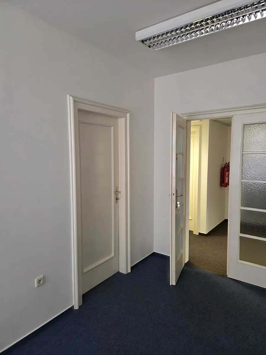 Nabízíme pronájem menší kanceláře o rozměru 14,46 m2 v centru Prahy, u budovy je zastávka tram, přes ulici metro. Kancelář je orientovaná do klidného vnitrobloku, vstup do budovy s recepcí, na patře společné prostory s kuchyňkou, sprchou a toalety. V ceně nájmu není zahrnutý nájem za společné prostory 37,- kč/m2 a servisní poplatky 150,- kč/m2.