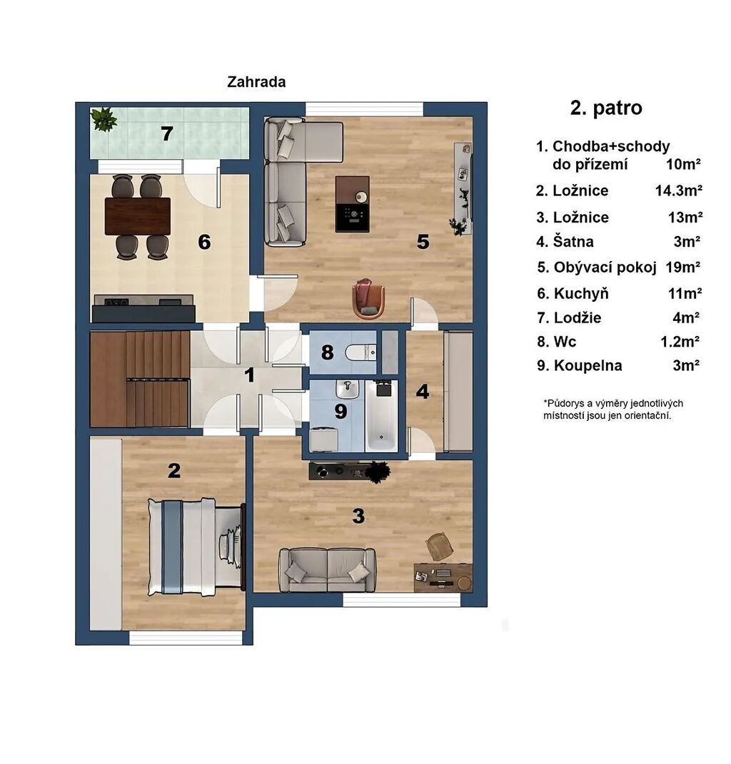 1. patro: bytová jednotka 3+1 s lodžií, koupelnou a samostatným WC