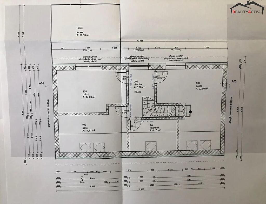 V 2.NP se může nacházet dle projektové dokumentace ložnice o CP 14,20m2, kde je vstup na budoucí terasu, kde je možnost vybudovat další posezení, pokoj o CP 14,41m2, pokoj o CP 22m2 a koupelny o CP 8,16m2. Vstup do všech místností je samostatný.
