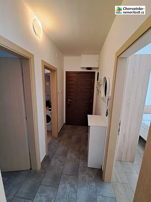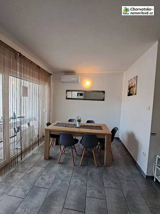 CHORVATSKO-NEMOVITOSTI.cz Vám nabízí prostorný třípokojový apartmán 69,52m2 v přízemí, disponuje dvěma terasami s vířivkou a oplocenou zahradou pro příjemné večery či snídaně venku. Apartmán je klimatizovaný, moderně a vkusně zařízený, jsou použity pouze kvalitní materiály a nábytek. Nachází se v přízemí apartmánového domu. Před domem jsou parkovací místa, pro váš vůz. Krásné pláže Lokunje a Vrtić, stejně jako centrum Novalje, jsou vzdáleny pouhých patnáct minut chůze stejně jako centrum Novalje. Pláž je písčito-oblázková a je včetně sprch a sociálních zařízení. Nedaleko jsou obchody, restaurace a pizzerie případně kebab. Do města Novalja se dostanete pohodlnou kvalitní silnicí z trajektu nebo z mostu, spojující pevninu a ostrov Pag.