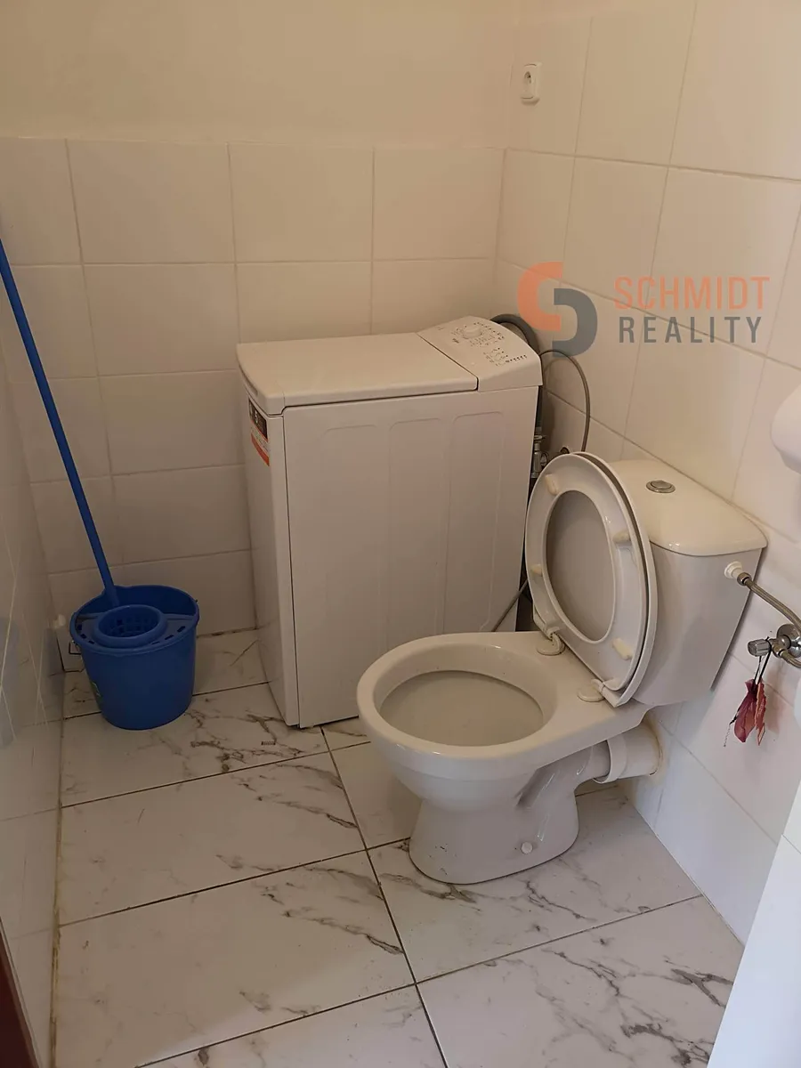 V bytě se nachází stavebně oddělená část s velkou postelí a šatními skříněmi, dále kompletně vybavená kuchyně včetně spotřebičů a koupelna se sprchovým koutem, pračkou a toaletou.