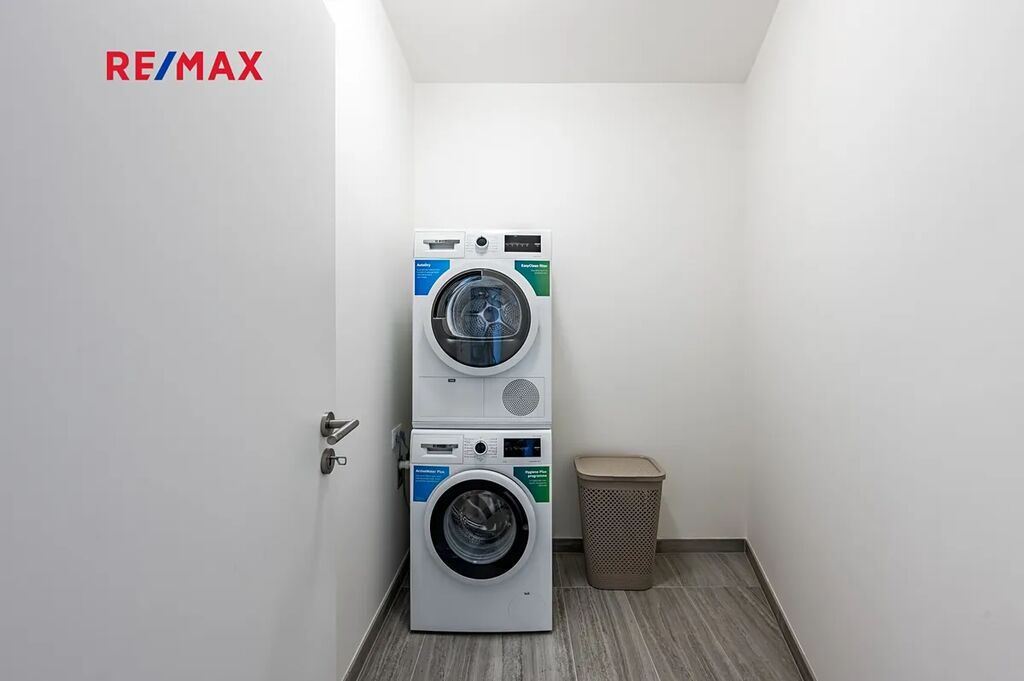 Dále koupelna s vanou a samostatná komora s pračkou a sušičkou. V předsíni jsou vestavěné skříně s dostatkem úložného prostoru.