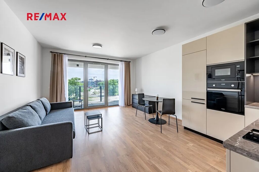 Nabízíme k pronájmu nový, moderně vybavený byt 1+kk s balkónem a sklepem v oblíbeném rezidenčním projektu Carolina Port v pražském Karlíně.