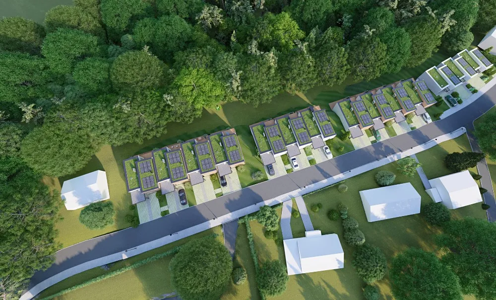 Nově navržena novostavba řadových rodinných domů se bude nacházet po pravé straně ul. Antonína Václavíka před zatáčkou směřující k Hotelu Pohoda.
