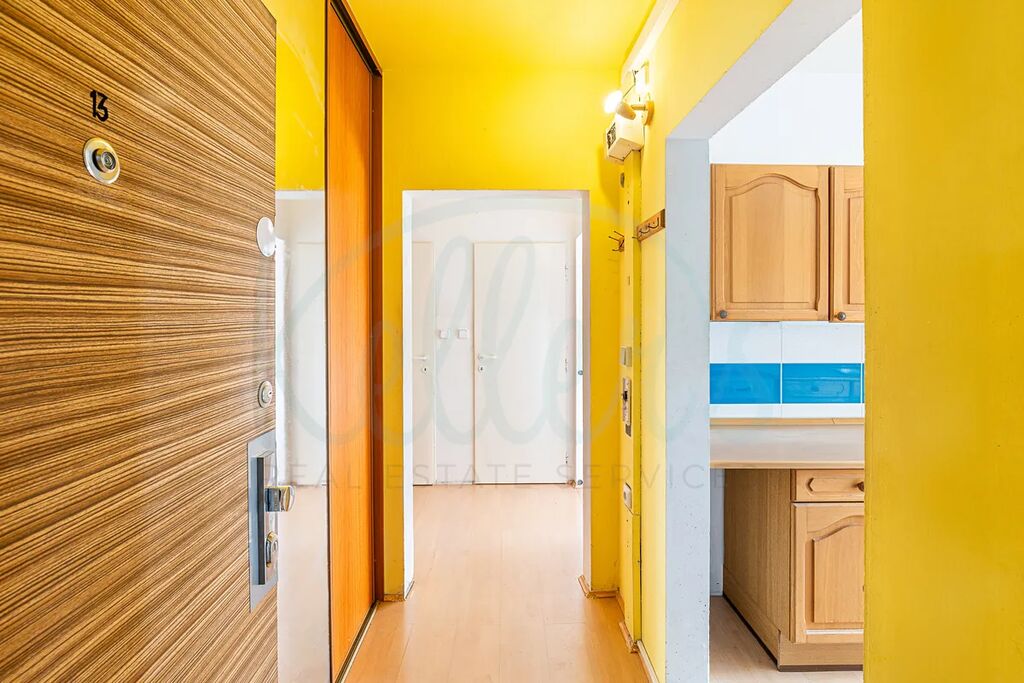 Dispozici bytu tvoří předsíň s prostorem pro vestavěné skříně, samostatná kuchyň, hlavní pokoj se vstupem na zasklenou, jižně orientovanou lodžii, koupelna s vanou a oddělené WC. Byt je v původním stavu – vhodný k rekonstrukci.