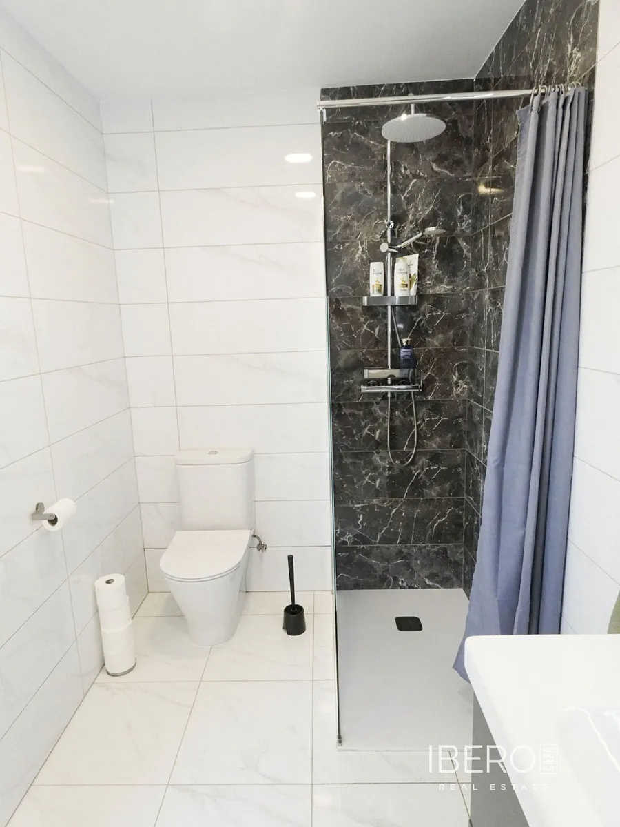 Velký bazén se slanou vodou vás zavede k venkovní kuchyni (s lednicí/mrazničkou a myčkou) a baru, stejně jako k prostorným plochám pro jídelní nábytek, odpočinkové části a lehátkům. Dům se dále otevírá prostornou a moderní kuchyní, televizní místností, velkou koupelnou se sprchovým koutem a čtyřmi ložnicemi, včetně hlavní ložnice se šatnou a vlastní koupelnou se sprchovým koutem. V koupelně a kuchyni je podlahové vytápění.