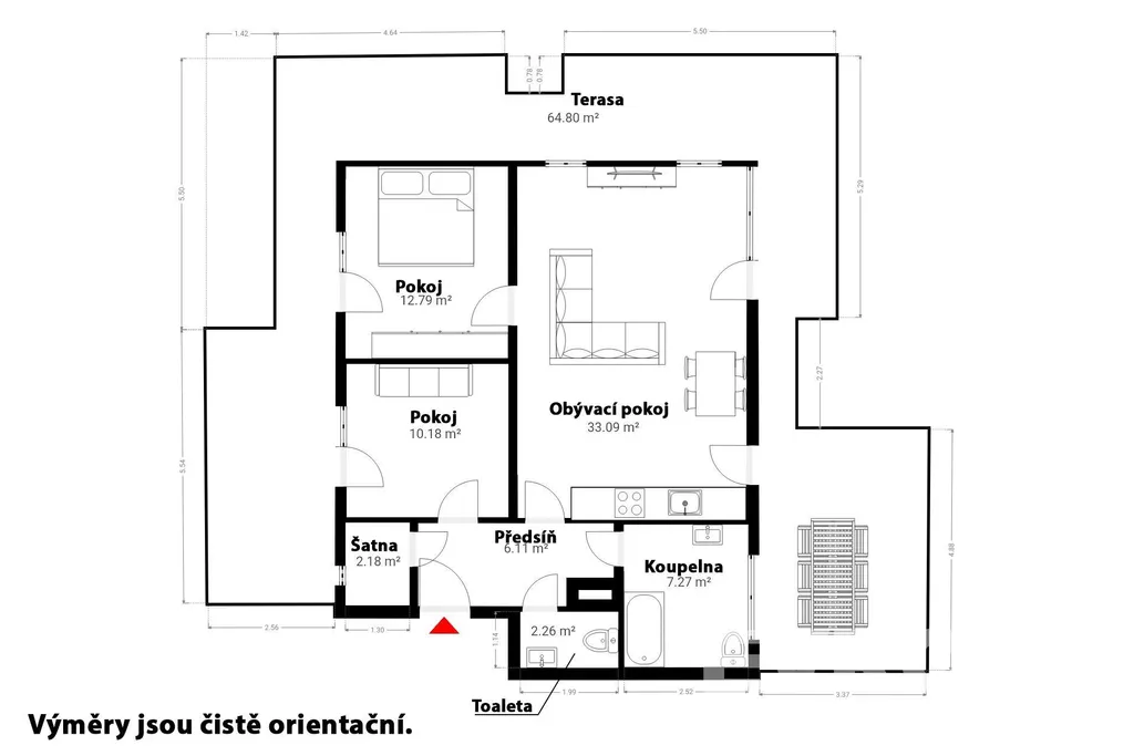 • dva samostatné neprůchozí pokoje, každý s výstupem na terasu