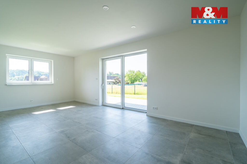 Novostavba rodinného domu typu bungalov s praktickou dispozicí 4+kk v příjemné části obce Horní Datyně. Dům byl již dokončen, je připraven k nastěhování - chybí zde pouze kuchyňská linka, která již není v kupní ceně domu. Součástí domu je také kompletní oplocení včetně elektrické vjezdové brány a branky. Vytápění domu zajišťuje úsporné tepelné čerpadlo systém vzduch / voda, což zajišťuje nízké náklady na vytápění a ohřev teplé vody. Jedná se o kvalitní cihlový dům z Porothermu s prostornou zahradou o výměře 873m2. Před domem 2 parkovací místa s možností zvětšení či přístavby garáže. U tohoto domu je možnost odpočtu DPH. Cena včetně DPH. V okolí výborná dostupnost služeb i do centra města. Více informací a prohlídka u makléře.