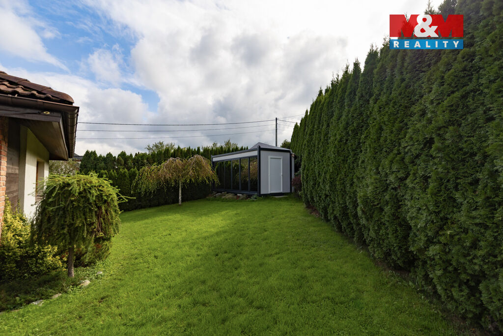 Exkluzivně Vám nabízíme k prodeji rodinný dům v klidné okrajové části Frýdku. Samostatně stojící dům se zastavěnou plochou 134 m², svým charakterem, použitými materiály a umístěním, nabízí komfortní bydlení s důrazem na dostupnost a soukromí. Dům je napojen na veškeré inženýrské sítě. Praktické a vkusné řešení interiéru, které navazuje na venkovní část se zahradou. Z obývacího pokoje se přes terasu s posezením dostanete na zahradu, kde je k dispozici krytý bazén a také zde naleznete posilovnu. Pod domem se nachází garáž pro dvě auta a možnost parkování dalšího vozu před garáží. Celková plocha zahrady činí 550 m² a je řešena jako okrasná. Výborná dostupnost. V blízkosti MHD. Stav nemovitosti je velmi dobrý, což zajišťuje pohodlné bydlení s důrazem na soukromí. Nezmeškejte tuto jedinečnou příležitost na klidné bydlení v Lískovci.