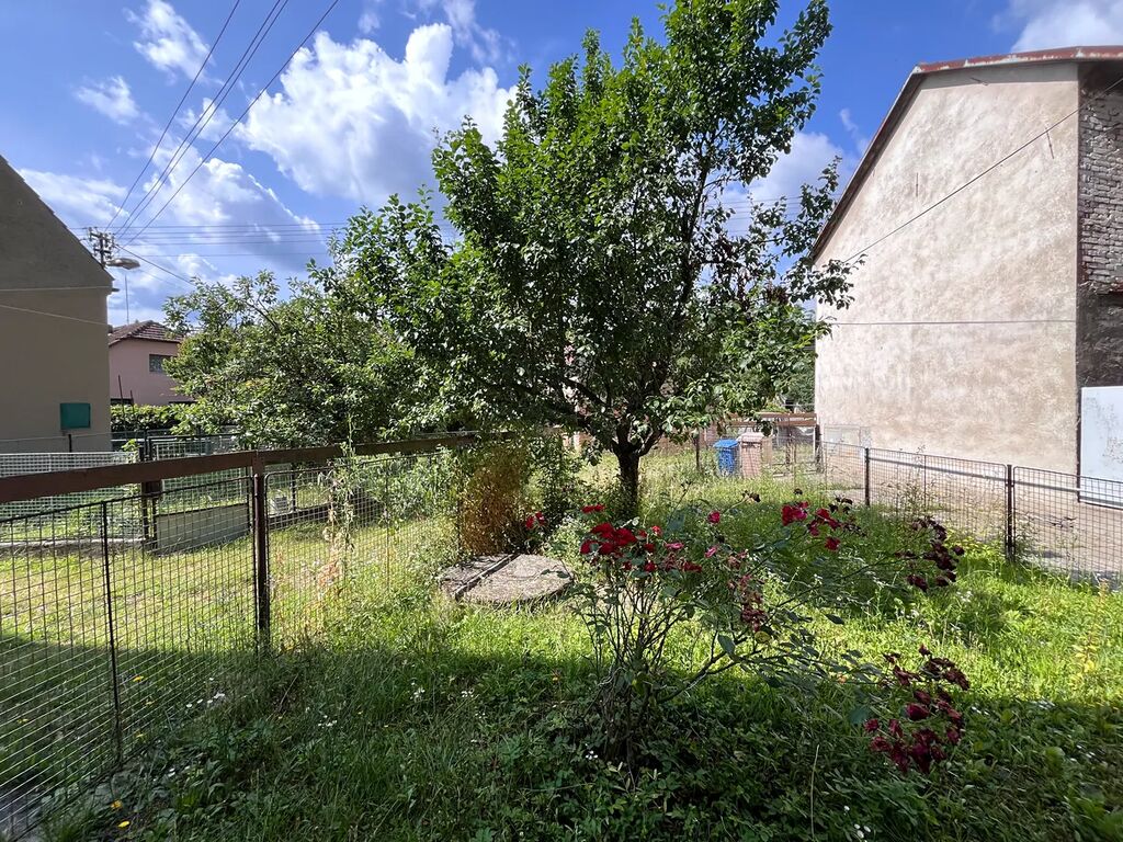 Před domem se nachází travnatá zahrádka se 2 stromy, keřem a studnou, u příjezdové cesty je postavena zděná garáž, za domem po strání je menší dvorek.
