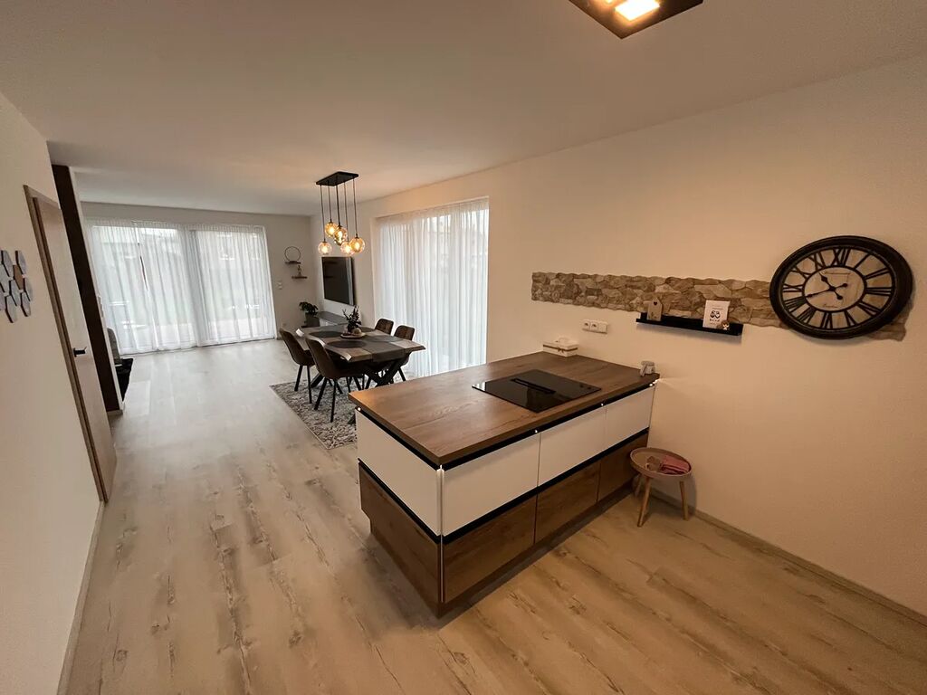 Dispozičně: V přízemí vstupní zádveří, prostorný pokoj s kuchyňským koutem a ostrůvkem, s vestavěnými spotřebiči BOSCH včetně myčky, 2x francouzské dveře do dvora a do zahrady, úložná komora řešena v prostoru pod schodištěm, samostatné WC, technická místnost s kotlem, pračkou a sušičkou. Dále do patra: schodiště s originálním tmavým zábradlím od kováře. V patře: celkem 3 neprůchozí pokoje, ložnice se vstupem na balkon 5 m2 a s vlastní šatnou, orientováno na východ, na druhé straně menší chodby 2 dětské neprůchozí pokoje ( nebo pokoj a pracovna) orientovány na západ ven s vyhlídkou ven z obce, koupelna se sprchovým koutem. Sklopný žebřík na půdní prostor.