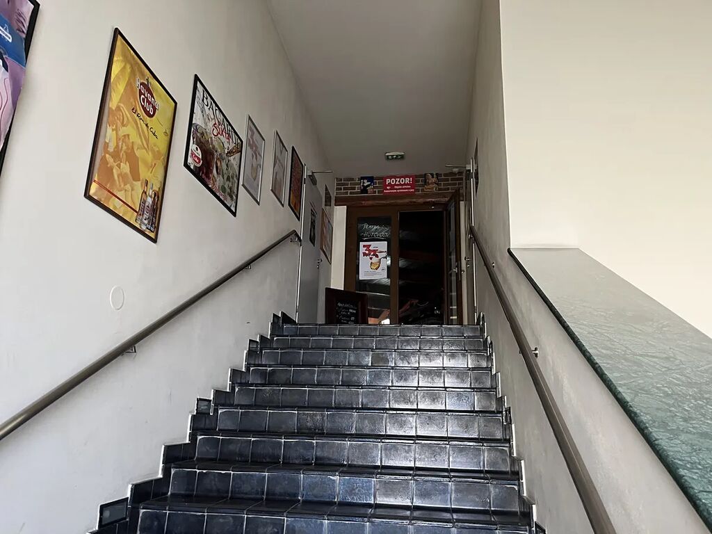 Budova nabízí rovněž bohatý suterén s řadou místností s možností využití pro sklady, šatny a zázemí personálu, místnost pro přepravky lahví a sudy s pivem a podávací plošinou pro zásobováním z ulice, dále všechny 3 podlaží jsou propojeny manipulačním výtahem.