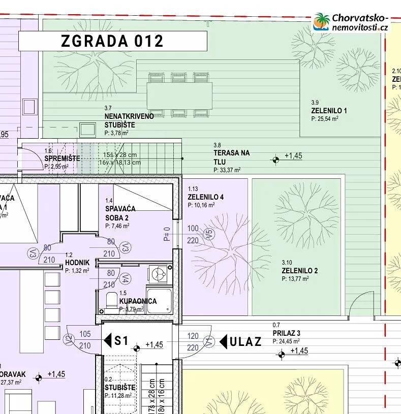 Na prodej byt 3+1 (S3 – budova 12) o celkové hrubé ploše 161 m2 (netto 66,08 m2) v prvním patře moderní novostavby nedaleko pláže Mali Dubrovnik v Povljaně na ostrově Pag.