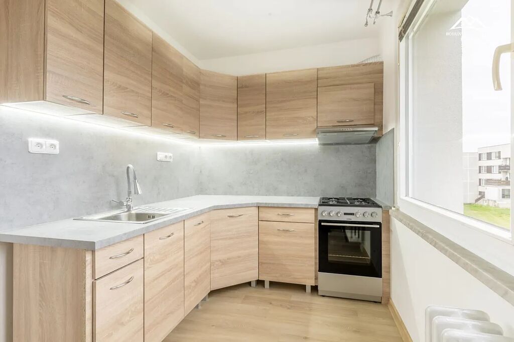 Byt tvoří 2 samostatné pokoje, kuchyň s jídelnou, velká chodba s možností šatny, koupelna se sprchou a oddělená toaleta. V kuchyni je k dispozici elektrický sporák s troubou, digestoří a prostornou linkou, což oceníte při každodenním vaření. Vytápění zajišťuje společný kotel pro bytový dům, což přispívá k nízkým nákladům na energie.