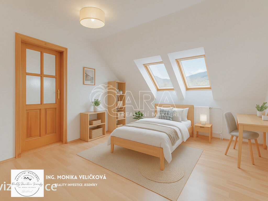 Mimořádná nabídka prostorného horského apartmánu o velikosti 135 m² v klidné části Železná, obklopené lesy a nádhernými výhledy do údolí Vrbna pod Pradědem.