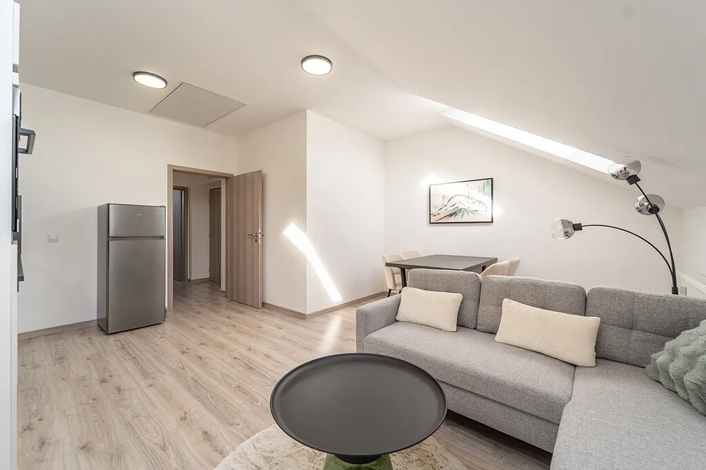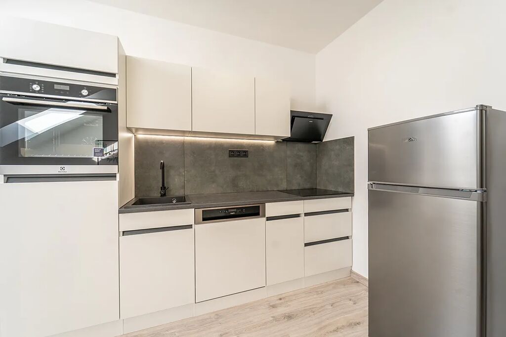 Dovolujeme si Vám nabídnout k pronájmu byt 2+kk v Praze. Tento byt se nachází v novostavbě, ve čtvrtém patře a je aktuálně po kompletní rekonstrukci, což zajišťuje moderní a příjemné bydlení. Plocha bytu činí 52 m² a půdní, úložný prostor 12 m². Byt je nově kompletně vybaven, kromě pračky, což oceníte zejména při stěhování.