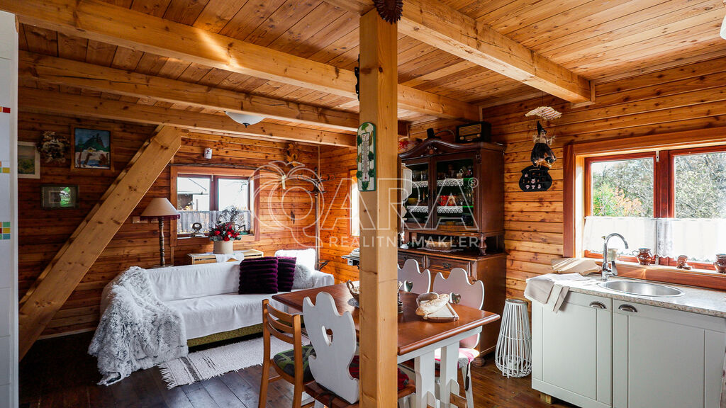 Stavba je kvalitně zateplená (12 cm vaty, parozábrana, termoskla, šindelová střecha s izolací), má měděné rozvody elektřiny, rozvody pro užitkovou vodu a certifikovaný zděný komín.