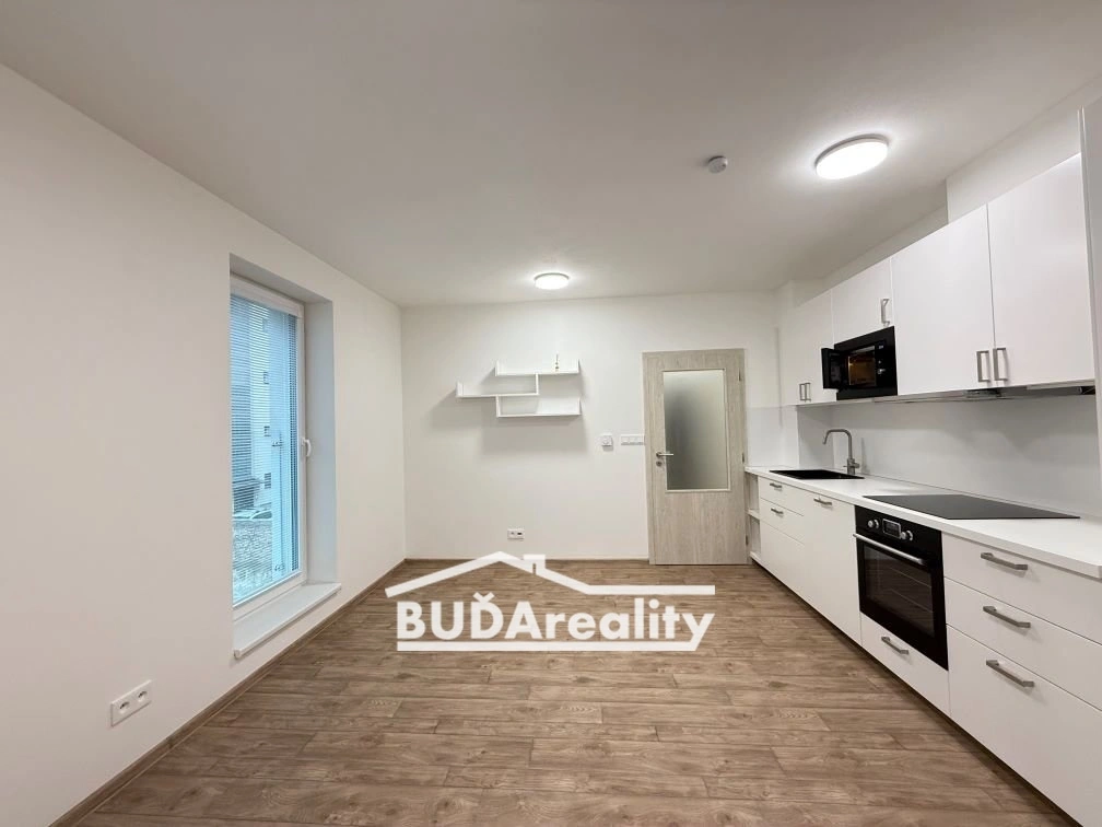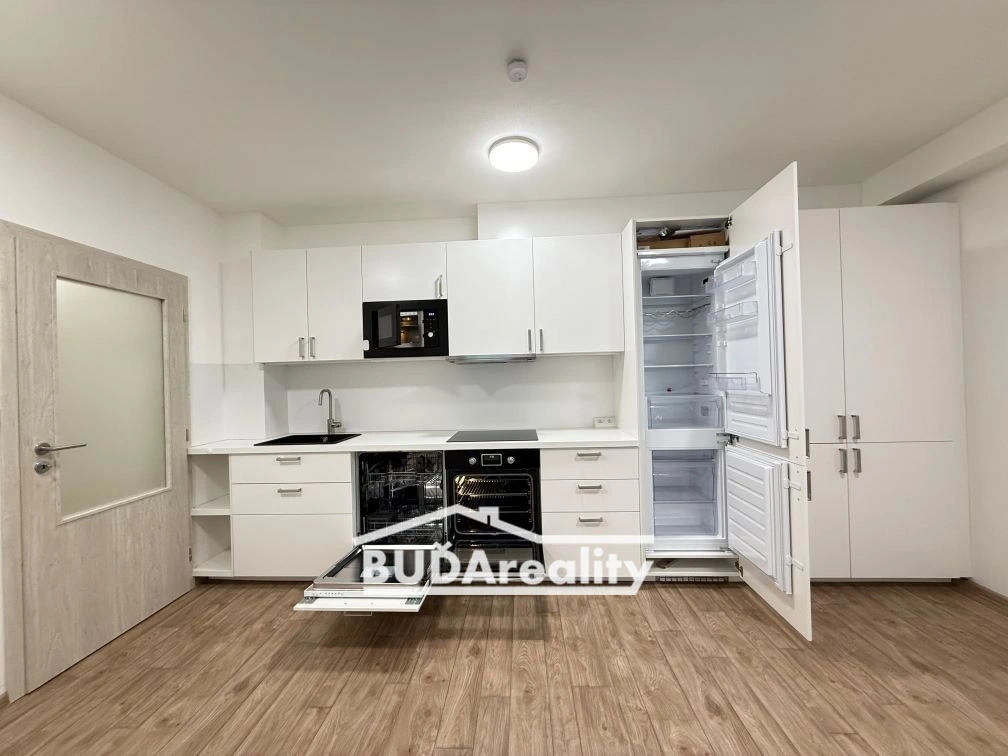 Do bytu v 3. NP Vás vyveze výtah. Bytová jednotka disponuje vstupní chodbou. Součástí bytu je dále koupelna se sprchovým koutem a wc, menší ložnice a obývací pokoj s kuchyňským koutem. Součástí moderní kuchyňské linky jsou spotřebiče – vestavěné spotřebiče (myčka, lednice s mrazícím boxem, mikrovlnná trouba, trouba, sklokeramická deska a digestoř). Součástí kuchyňské linky je také úložná skříň sladěná ve světlém designu.