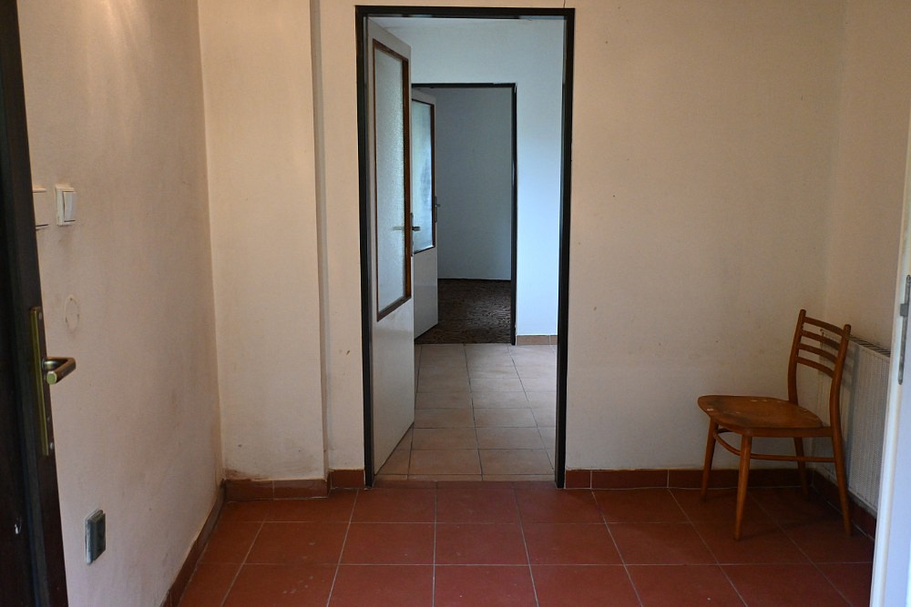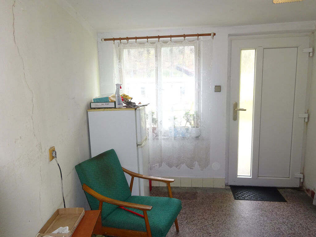 Rodinný dům po částečné rekonstrukci (rok 2012 - výměna krytiny včetně klempířských konstrukcí, v přední části domu nová plastová okna; rok 2015 - nové fasádní omítky; rok 2022 - vytápění domu včetně elektrického kotle, rekonstrukce podkroví). V přízemí zádveří, chodba, kuchyň, dva pokoje, skládek, koupelna (vana a umyvadlo), WC, dílna, schody na půdu; v podkroví (přístupné ze dvora, možnost zřízení přístupu z obytné části domu) chodba, kuchyňský kout, pokoj, koupelna (vana a umyvadlo), WC; teráska. Vytápění domu ústřední (elektrický kotel), ohřev teplé vody el. bojlerem. Dům je připojený na elektřinu, pitnou vodu a kanalizaci (na zemní plyn se lze v této části obce připojit). Vhodná modernizace domu. Na dvorku dřevník, skládek, zemní sklepy, za dvorkem je po schodech ve svahu situovaná zahrada se skleníkem a studnou na užitkovou vodu. Zastavěná plocha 199 m², ostatní pozemky 243 m². PENB nebyl doložen, klasifikační třída "G".
