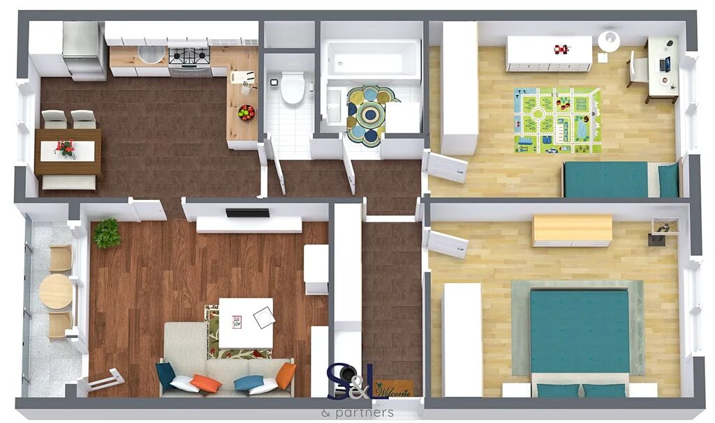 Součástí bytu je lodžie s příjemným výhledem a sklepní kóje pro uskladnění věcí. Dispozice bytu se třemi neprůchozími pokoji nabízí dostatek prostoru pro rodinu i jednotlivce hledající komfortní bydlení.