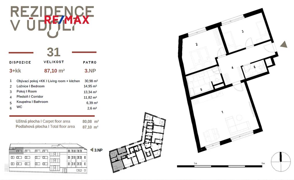 Byt se nachází ve 3. nadzemním podlaží novostavby a díky své poloze nabízí dostatek přirozeného světla a příjemnou atmosféru.