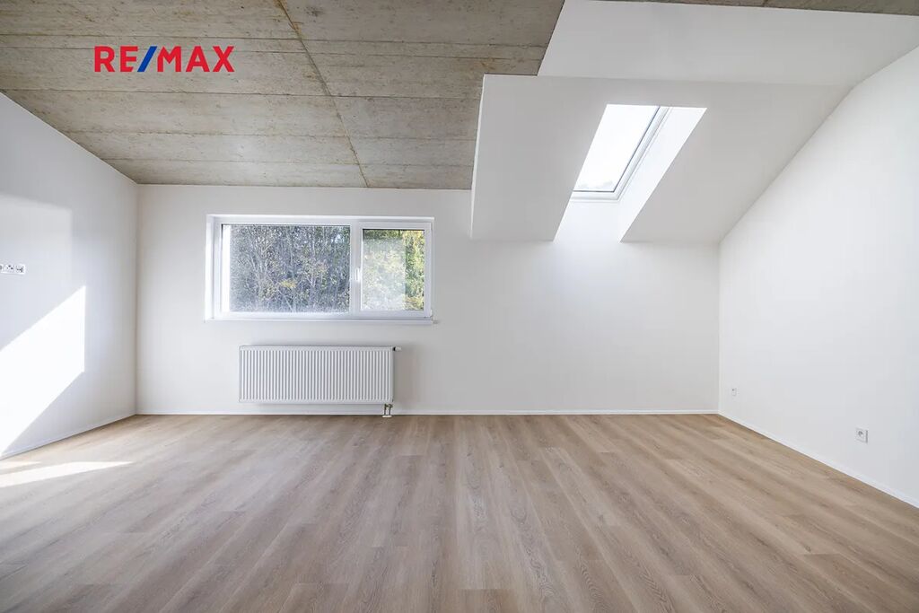 Kvalitní standard zahrnuje velkoformátová okna s izolačními trojskly, otopná tělesa s termostatickou hlavicí a pečlivě zpracované povrchy, které zaručují komfort i nízké provozní náklady.