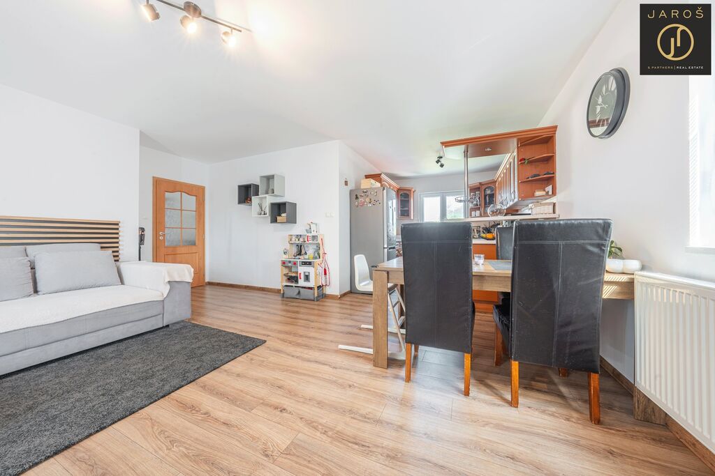 Užitná plocha domu činí přibližně 190 m². Horní patro nabízí zrekonstruovaný byt 4+kk o výměře 95 m² se samostatným vstupem a zastřešeným posezením. Přízemí o dispozici 3+1 je v původním stavu a aktuálně slouží jako ubytovací zařízení, s možností vytvoření další plnohodnotné bytové jednotky. Pozemek o rozloze 445 m² je oplocený, udržovaný, orientovaný na sever a zahrnuje garáž, skladovací prostory a parkování za elektricky ovládanými vraty.