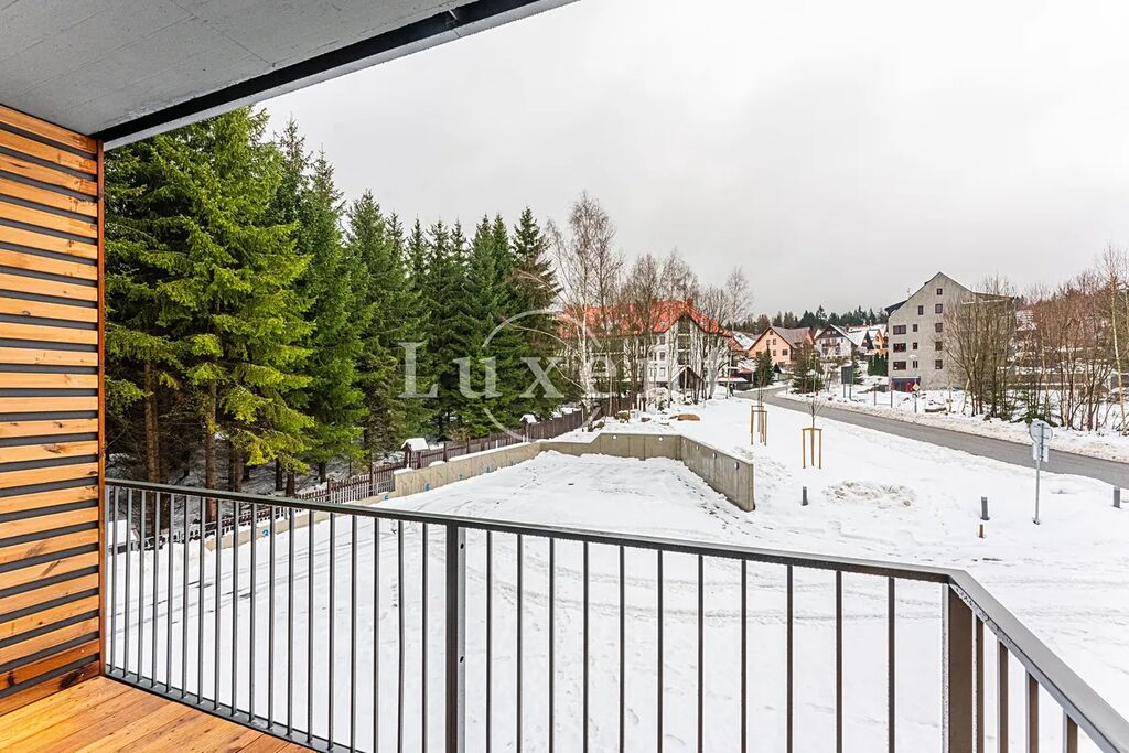 Nabízíme apartmán o dispozici 3+kk ve 2. NP luxusního projektu HARRACHOV PEAKS. Apartmán má obytnou plochu 83,5 m² a celkovou užitnou plochu 87,8 m². Z obývacího pokoje a ložnice se vychází na balkony 9,7 a 5 m².