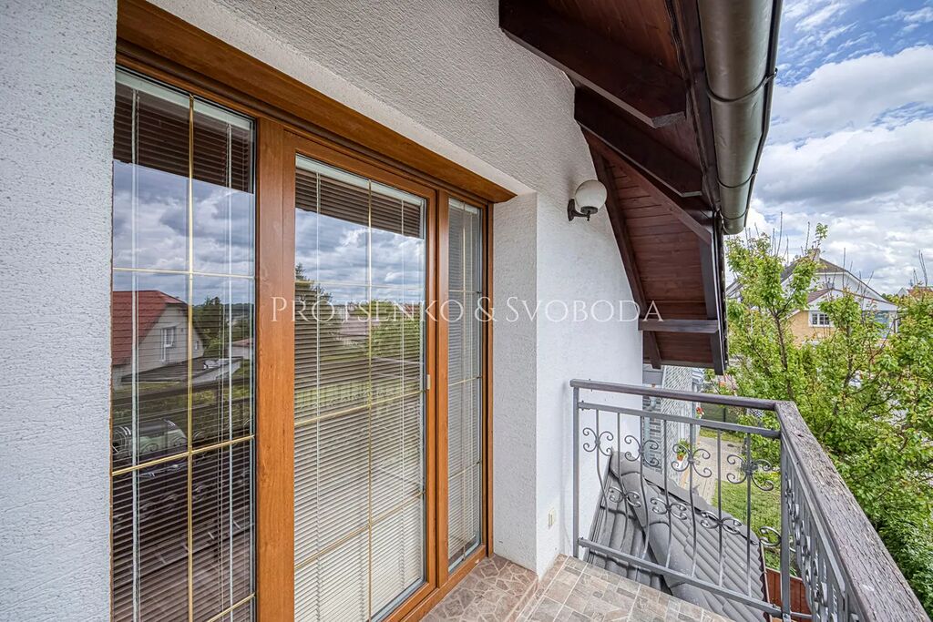 V podkroví se pak nachází galerie, hlavní ložnice se šatnou a balkonem, dva dětské pokoje, pracovna, koupelna s vanou i sprchovým koutem, WC a další komora.