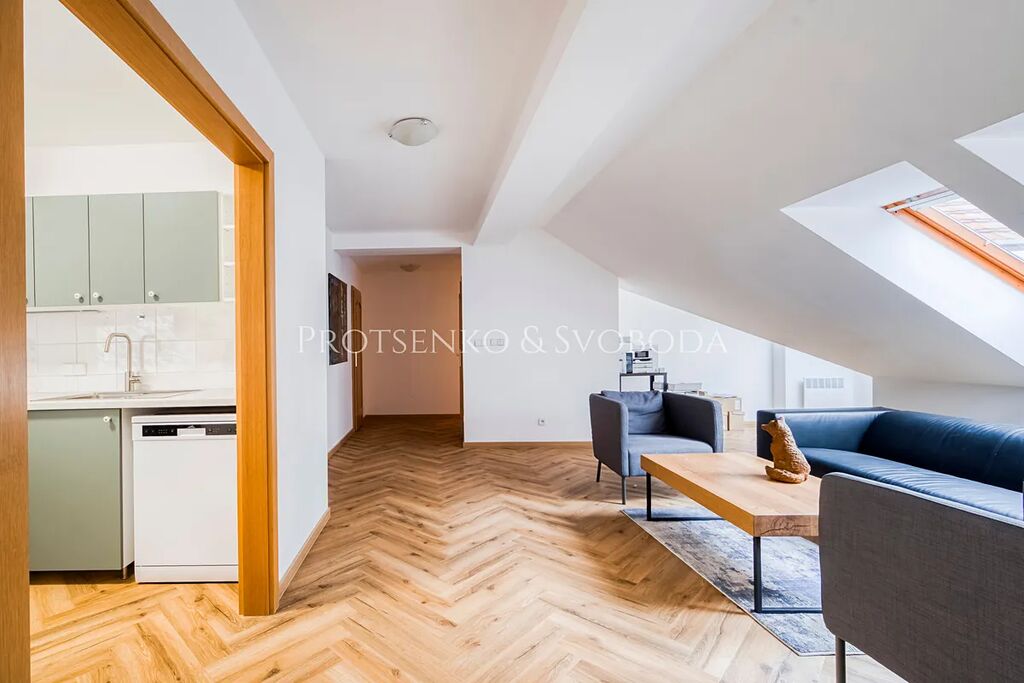 Společnost Protsenko & Svoboda v zastoupení majitele nabízí k pronájmu jedinečný mezonetový byt o celkové výměře 81,6 m², který se nachází v samém srdci Prahy – na Ovocném trhu, jen pár kroků od Stavovského divadla, metra Můstek a Náměstí Republiky.