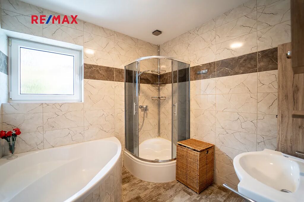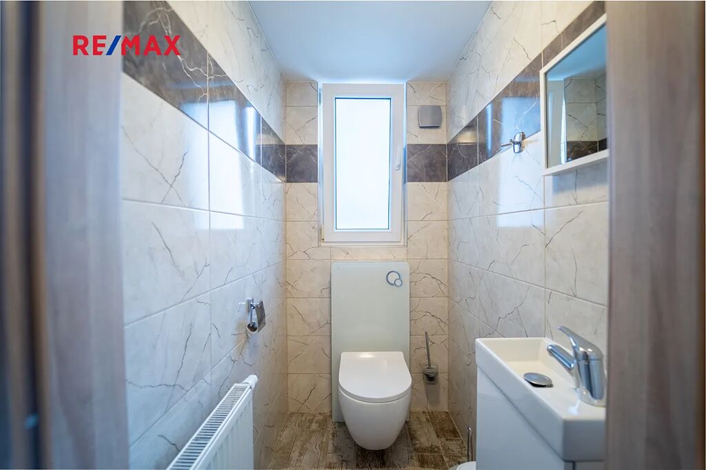 Dům je částečně podsklepený s komorou na potraviny, technickou místností s pračkou, sušičkou a bojlerem zn. DRAŽICE, 2 x pokoj a jedním pokojem pro hosty se samostatným vchodem z nádvoří. Obývací pokoj s oknem do ulice je součástí kuchyně s novou kuchyňskou linkou se spotřebiči, vše součástí domu a ceny. Spotřebiče: americká lednice zn. BEKO, horkovzdušná trouba zn. AEG, mikrovlnná trouba zn. Concept, sklokeramická deska zn. AEG, digestoř zn. Concept. Koupelna s rohovou vanou a sprchovým koutem, WC je samostatné s malým umyvadlem. Podlahy domu jsou plovoucí a kremnická dlažba s podlahovým topením v koupelně a v ostatních místnosti jsou osazeny radiátory.