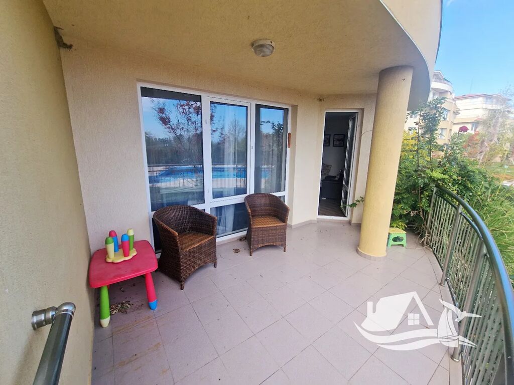 Komplex, ve kterém se apartmán nachází, nabízí výborné zázemí pro pohodlný život i odpočinek. Rozsáhlá udržovaná zahrada, bazén pro dospělé i děti, bar, dětské hřiště, grilovací zóna, volejbalové hřiště, stolní tenis i parkování – vše na dosah ruky. Cesta na pláž vede krátkou, stinnou pěšinou v borovém háji a zabere jen pár minut.