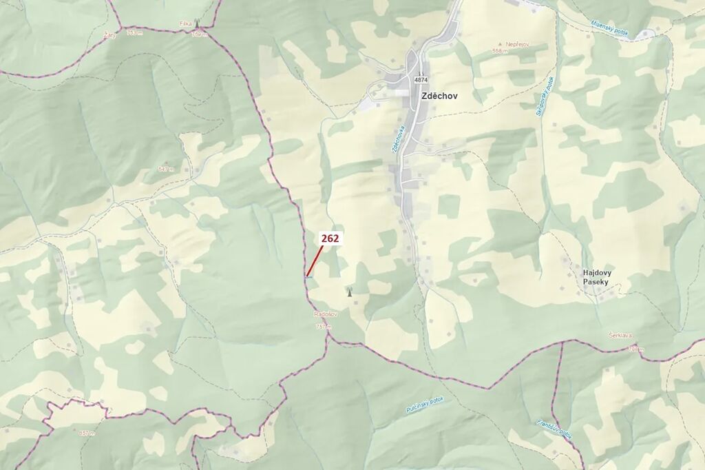 Lesní pozemek o výměře 273 m2, parcelní číslo 262, podíl 1/1, katastrální území Zděchov, obec Zděchov, obec s rozšířenou působností Vsetín, okres Vsetín, Zlínský kraj.